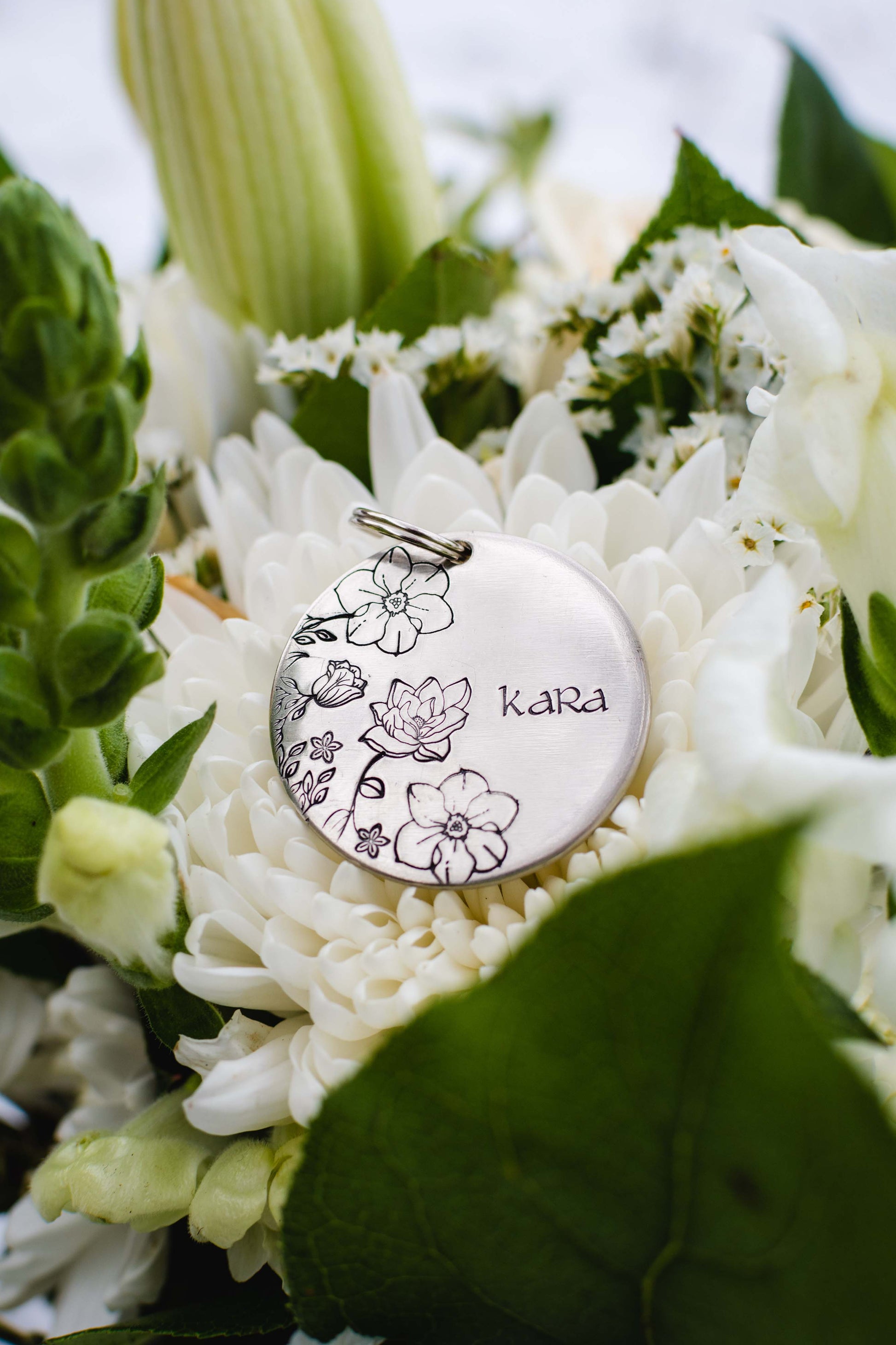Due to the fact that our tags are hand stamped and made to order, there will be slight variations between tags. Each stamp is a set size so the design will look slightly different depending on the size of tag you choose. All tags will come with a small 1/2” and a large 1” split keyring. Carabiners and extra keyrings can be purchased in the ‘Add Ons’ tab.